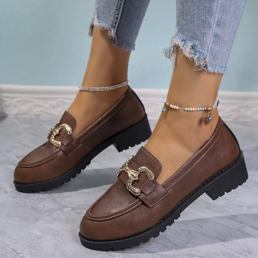 Women's Thick Heel Loafers Spring New Round Head Deep Mouth Metal Buckle Thick Sole Anti-slip Wear-resistant Single ShoesRegular price $33.99 USDRegular priceUnit price / per$33.99 USDSale price $33.99 USD