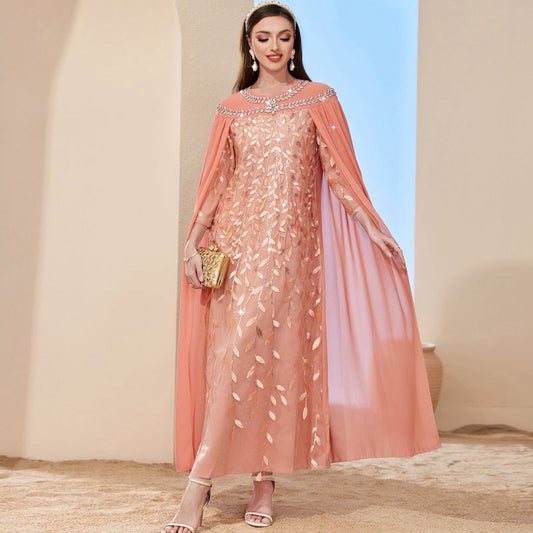 Women’s Clothing orange pink leaf mesh embroidery fashion cloak two piece dress lady long skirtRegular price $58.99 USDRegular priceUnit price / per$87.99 USDSale price $58.99 USDSale