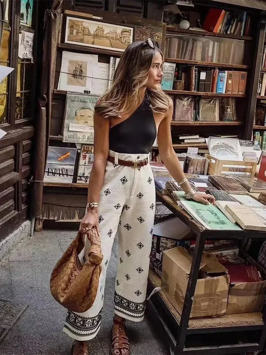 Cotton Embroidery Long Wide Leg Pants For Women Bohemian Holiday Fashion Slim White Trouser Female New InRegular price $16.99 USDRegular priceUnit price / per$16.99 USDSale price $16.99 USD