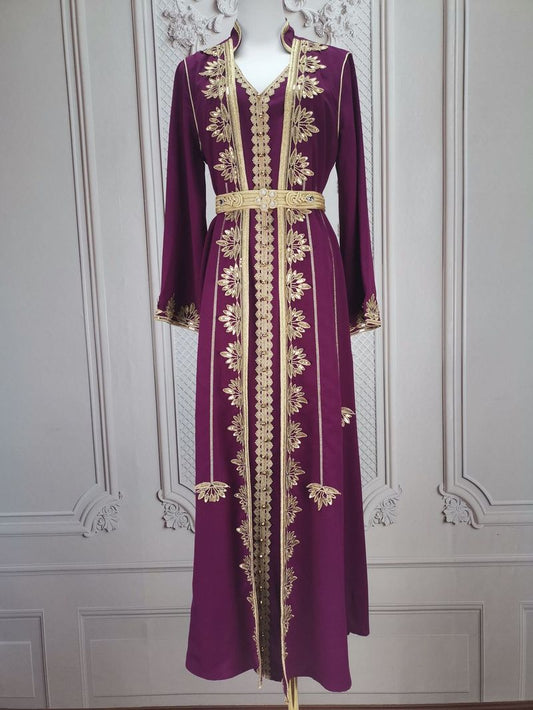 Elegant Muslim Robe For Women - Long Sleeve Two-Piece Set With Webbing Detail | Modest DressRegular price $54.99 USDRegular priceUnit price / per$82.99 USDSale price $54.99 USDSale
