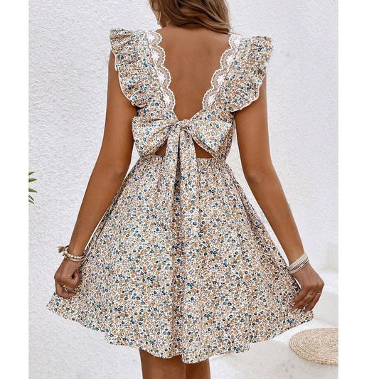 Women's Clothing New Red Sexy Backless Waist Tie Printed Short Skirt Flared SleevesRegular price $47.99 USDRegular priceUnit price / per$47.99 USDSale price $47.99 USD