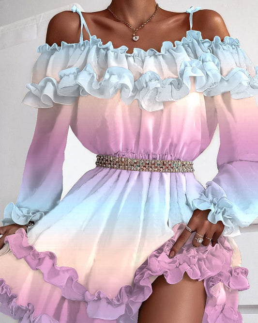 Women's clothing fashionable gradient printed one-line collar suspender dress - without beltRegular price $54.99 USDRegular priceUnit price / per$54.99 USDSale price $54.99 USD