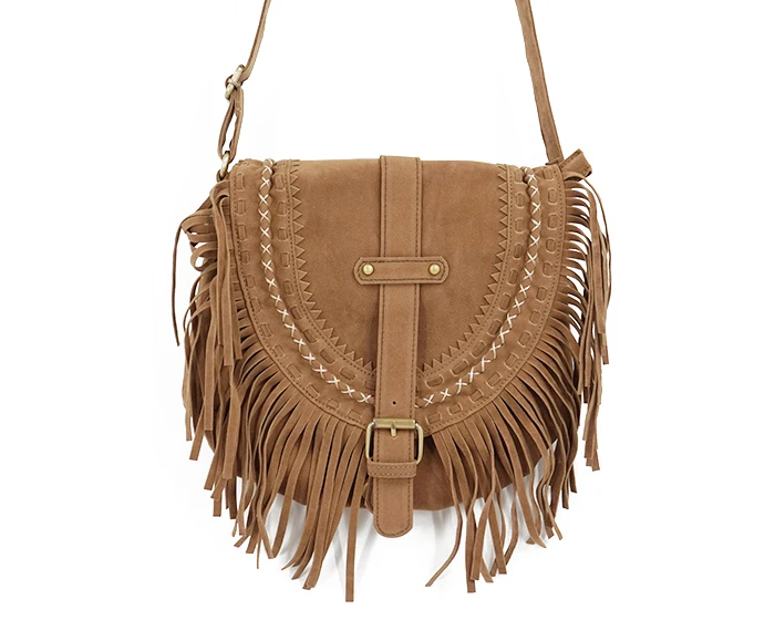Women Fringed Messenger Bag Faux Suede Fringe Tassel Boho Hippie Gypsy Bohemian Tribal Ibiza Style Cottage Cross body Bag
