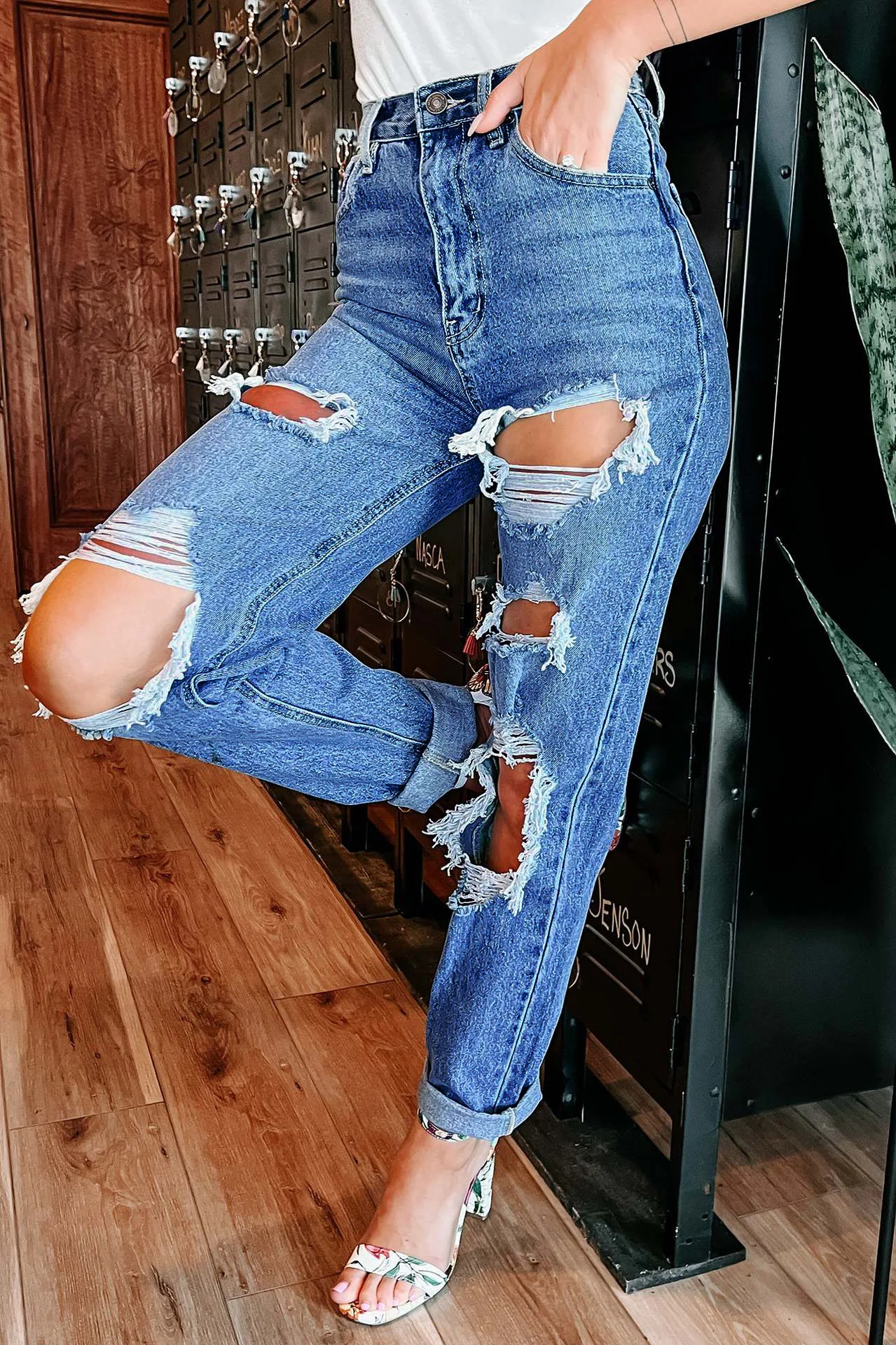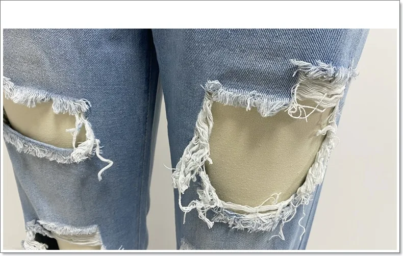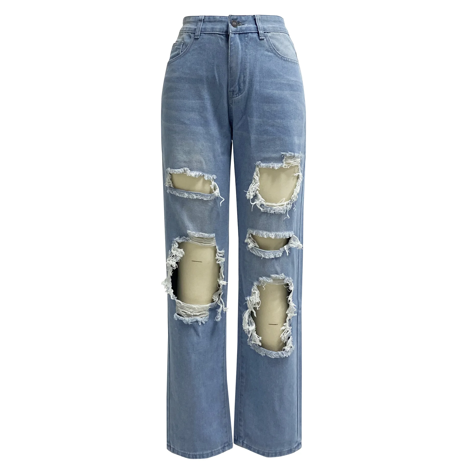 American Straight Tube Ripped High-waisted Jeans, Women's Spring/Summer New Loose Personality Ripped Long Jeans,Street Hipster