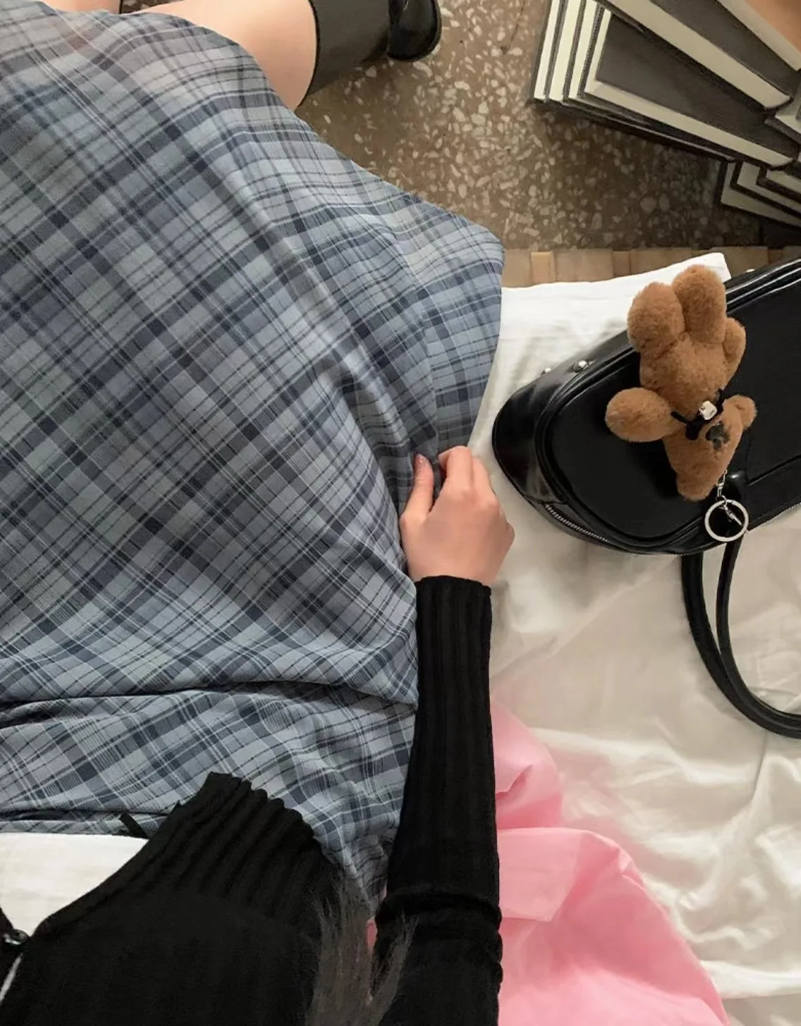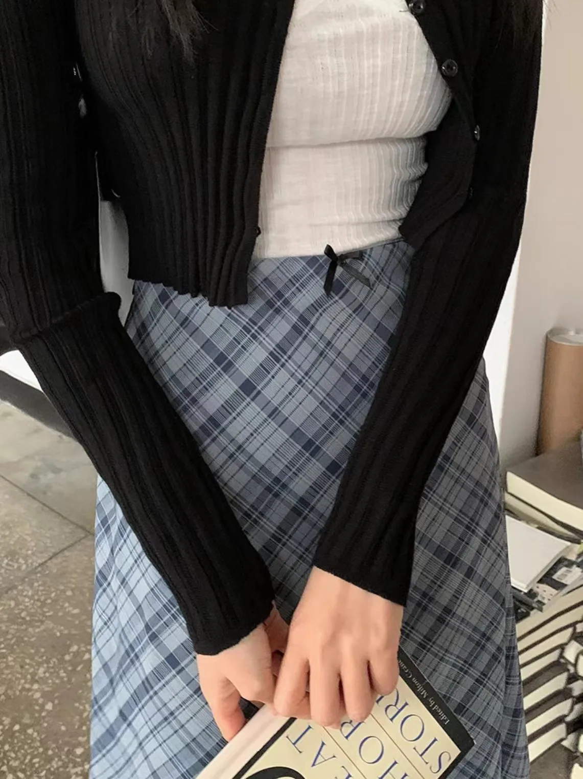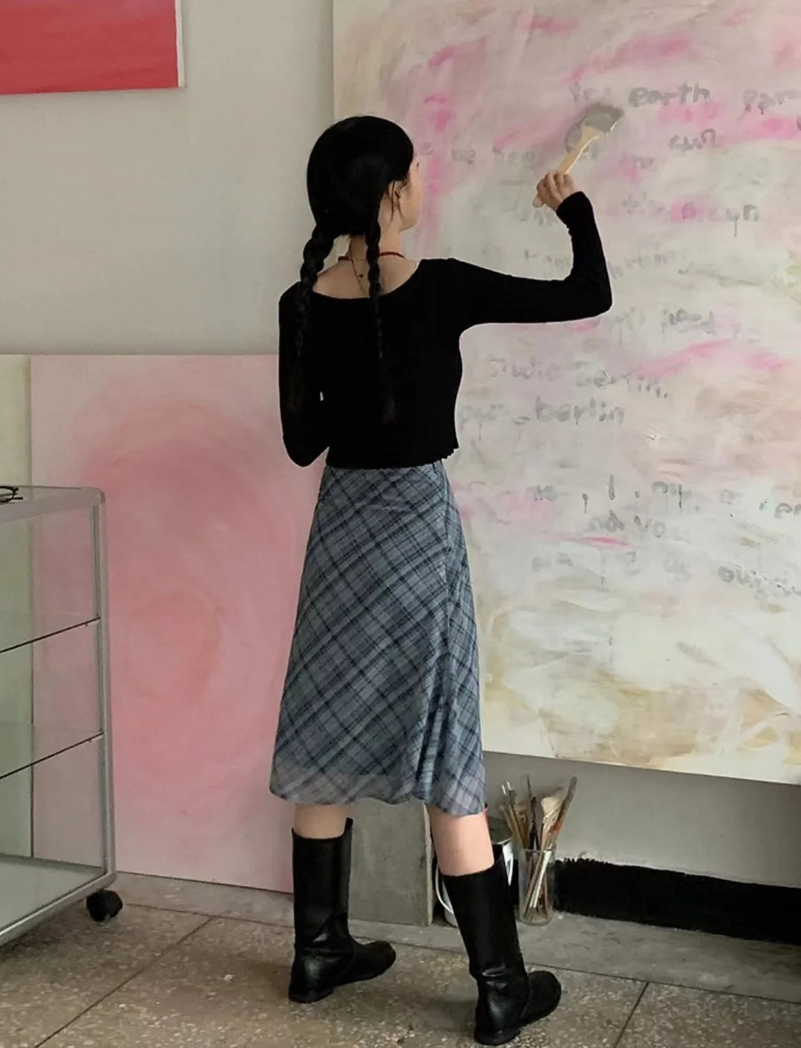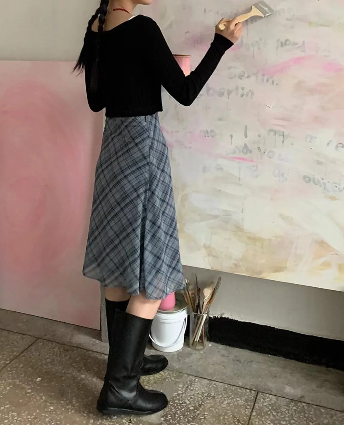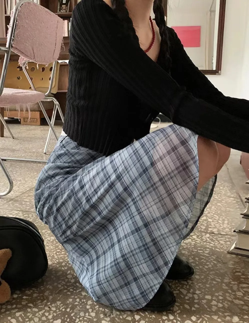 Chic Vintage Spring Summer Plaid ter Ne Dr High Waist A-Line Skirt Commute Sle Polyester Fiber 8-24 Years Old