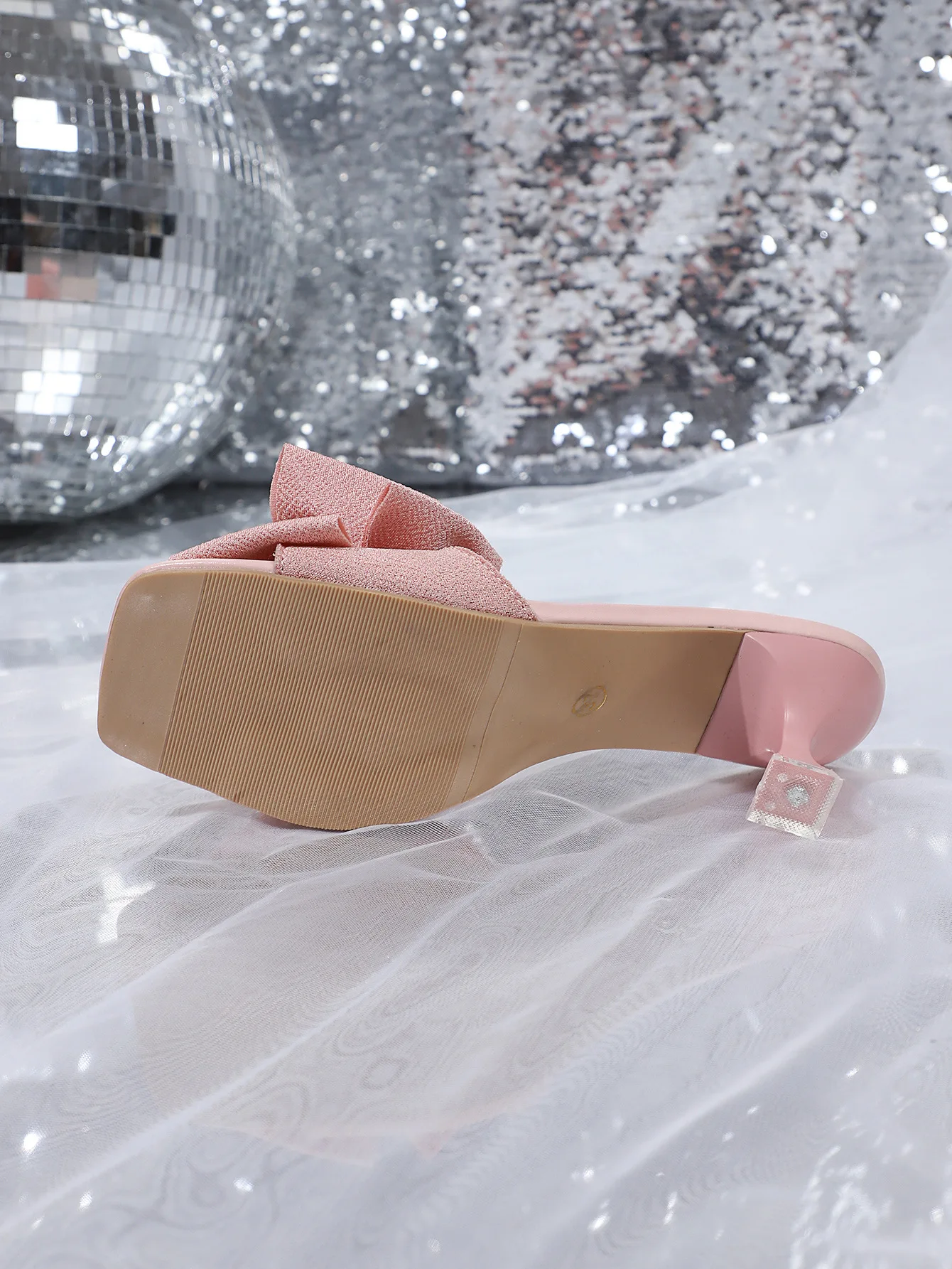 Square Toe Open Toe Design Slim Heel Outside Slippers 2025 Summer New Bow Non-slip High Heel Cool Mopping Plus Size 36-43