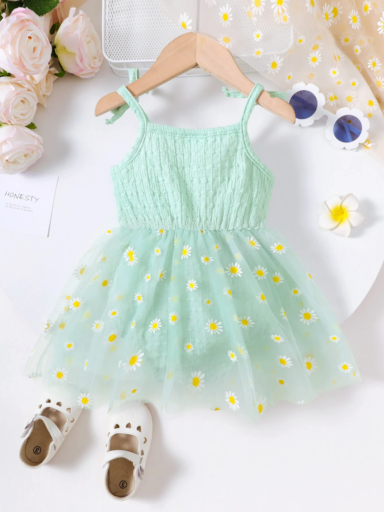 Toddler Children's Lace Up Bow Small Daisy Chiffon Bodysuit Suitable for Cute Baby Girls From 3 to 24 Months Summer Fashion Clot
