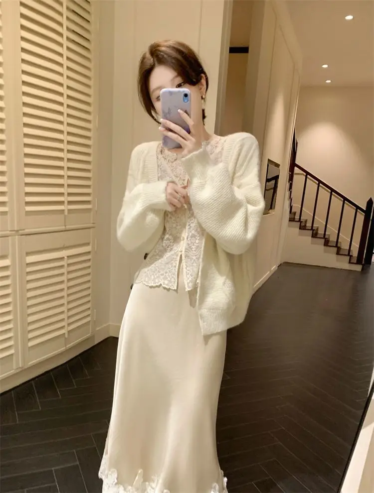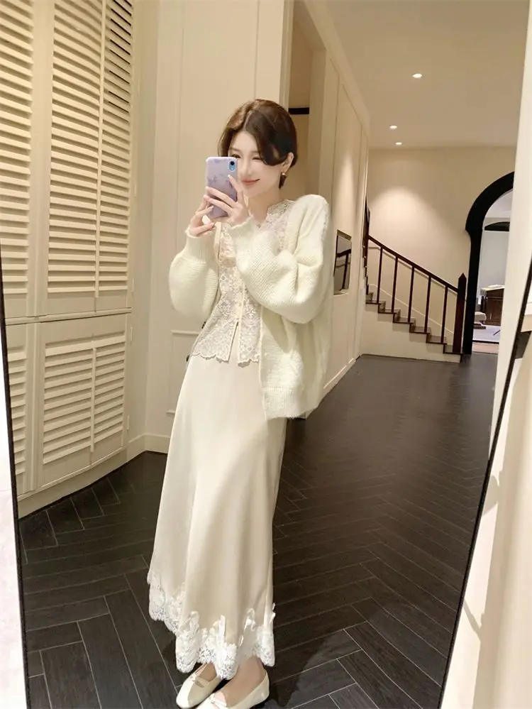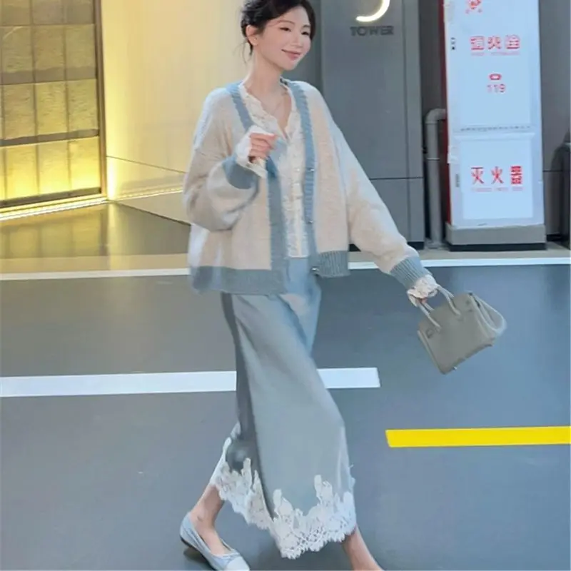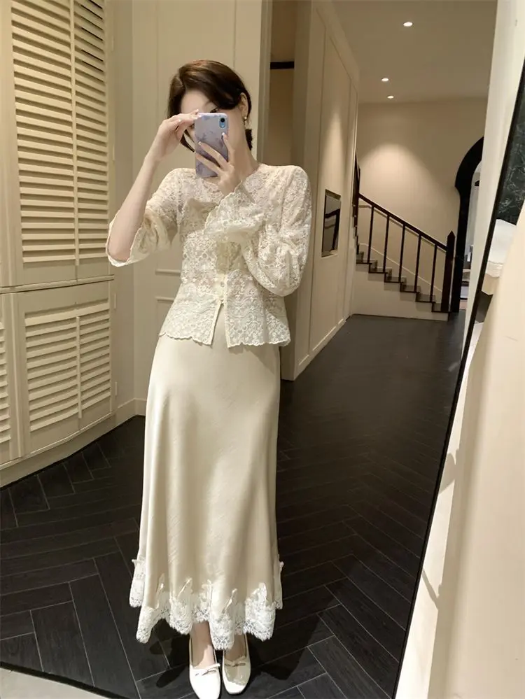 Wedbleser Western Style Lace Patchwork Silk Skirt Spring 2025 New Hanging Vinegar Satin A-line Mid Length Skirts Women