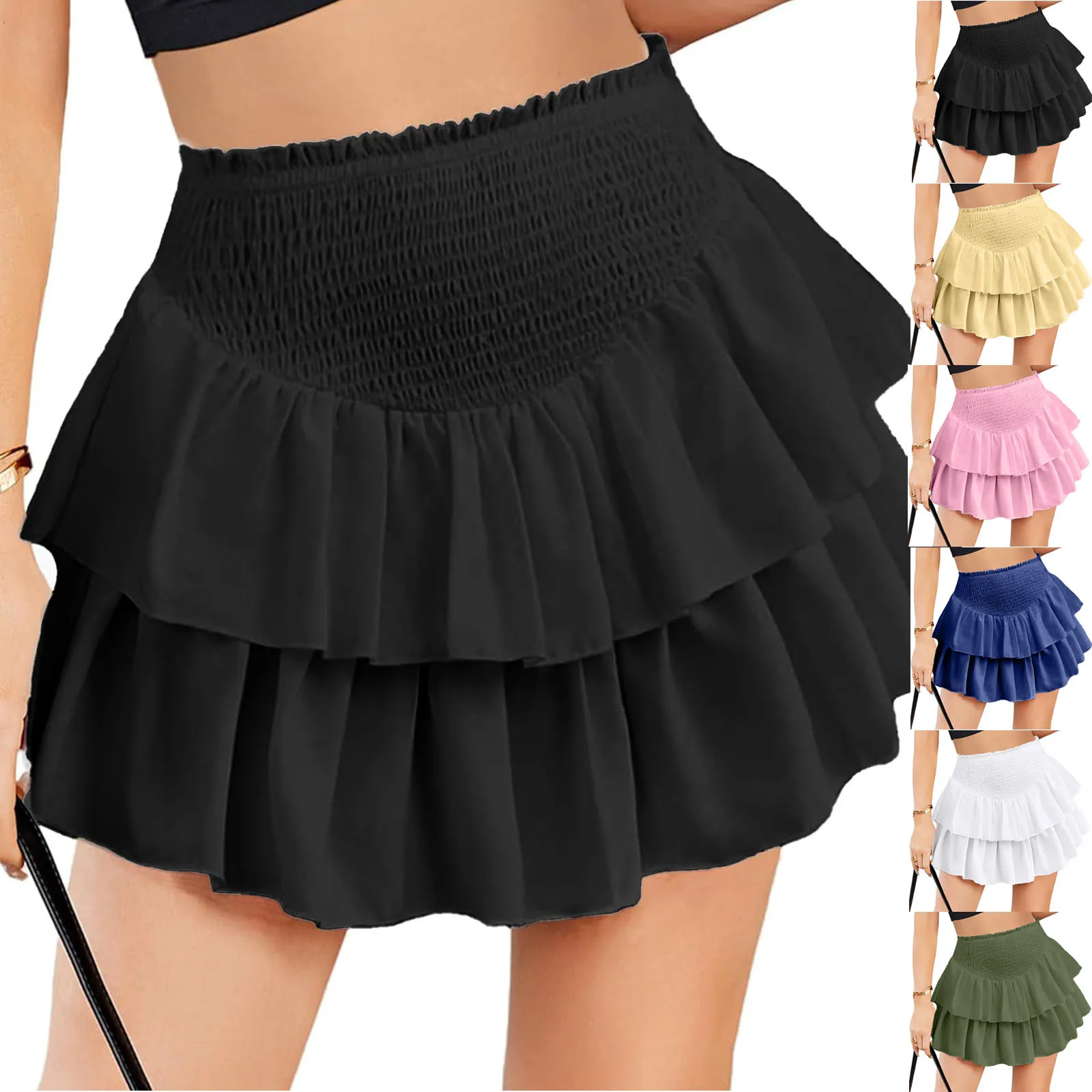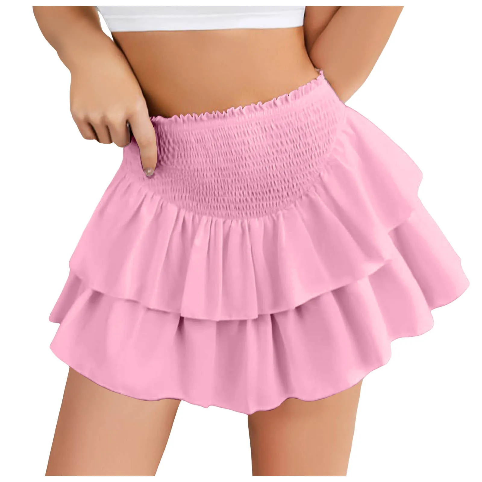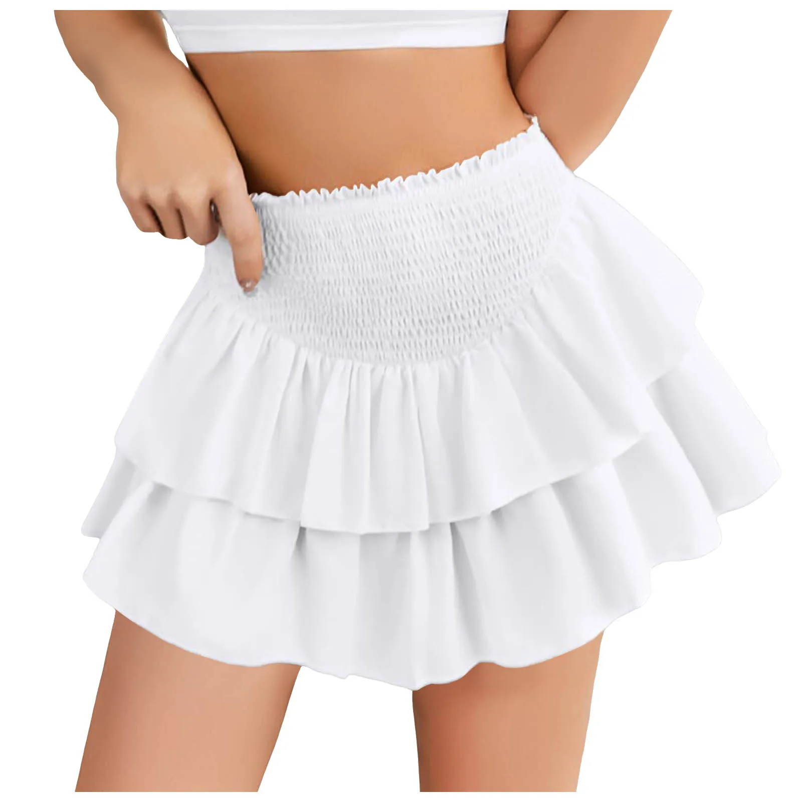 Women High Waist Ruffle Flowy Mini Skirts Layered Pleated Casual Fashion Short Skirt Summer Beach White Pink Skirts Y2k Sweet
