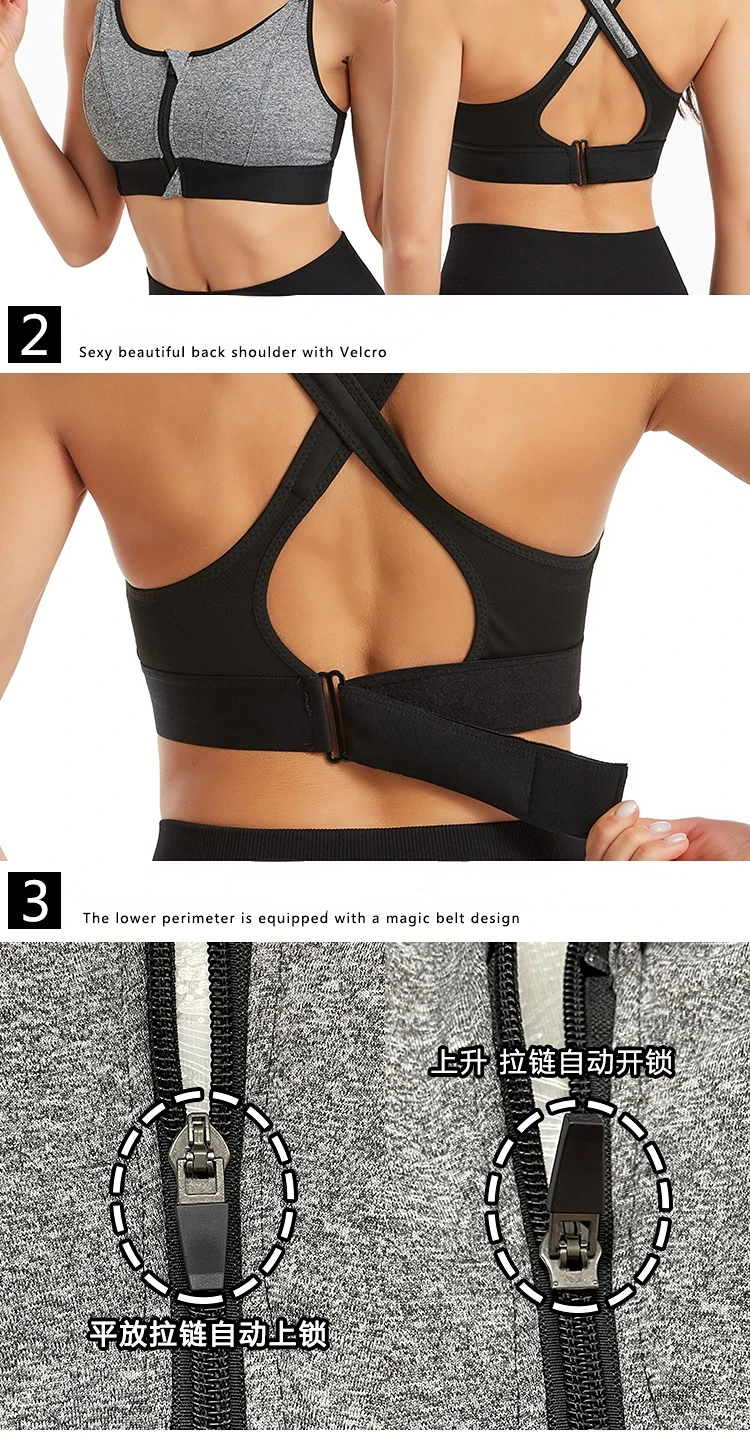 Women Sports Bras Tights Crop Top Yoga Vest Front Zipper Plus Size Adjustable Strap Shockproof Gym Fitness Athletic Brassiere